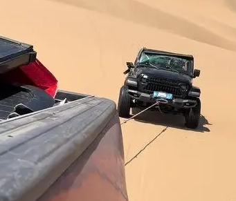 沙漠車輛救援安全是第一位,要正確使用電動絞盤,在保證自身安全的同時,對被困車輛進行救援。
